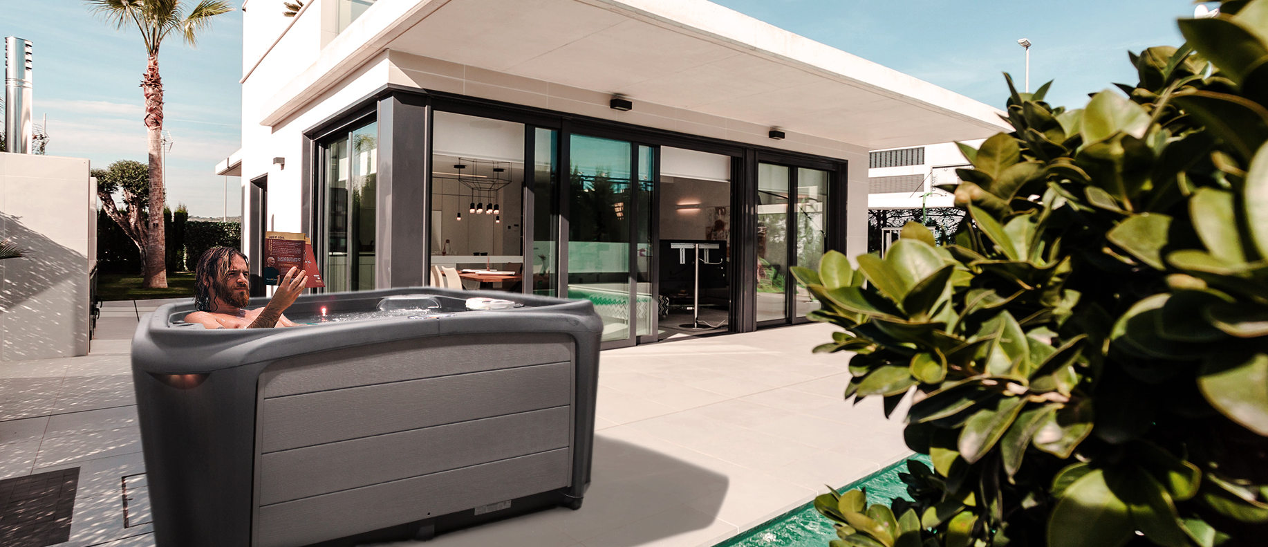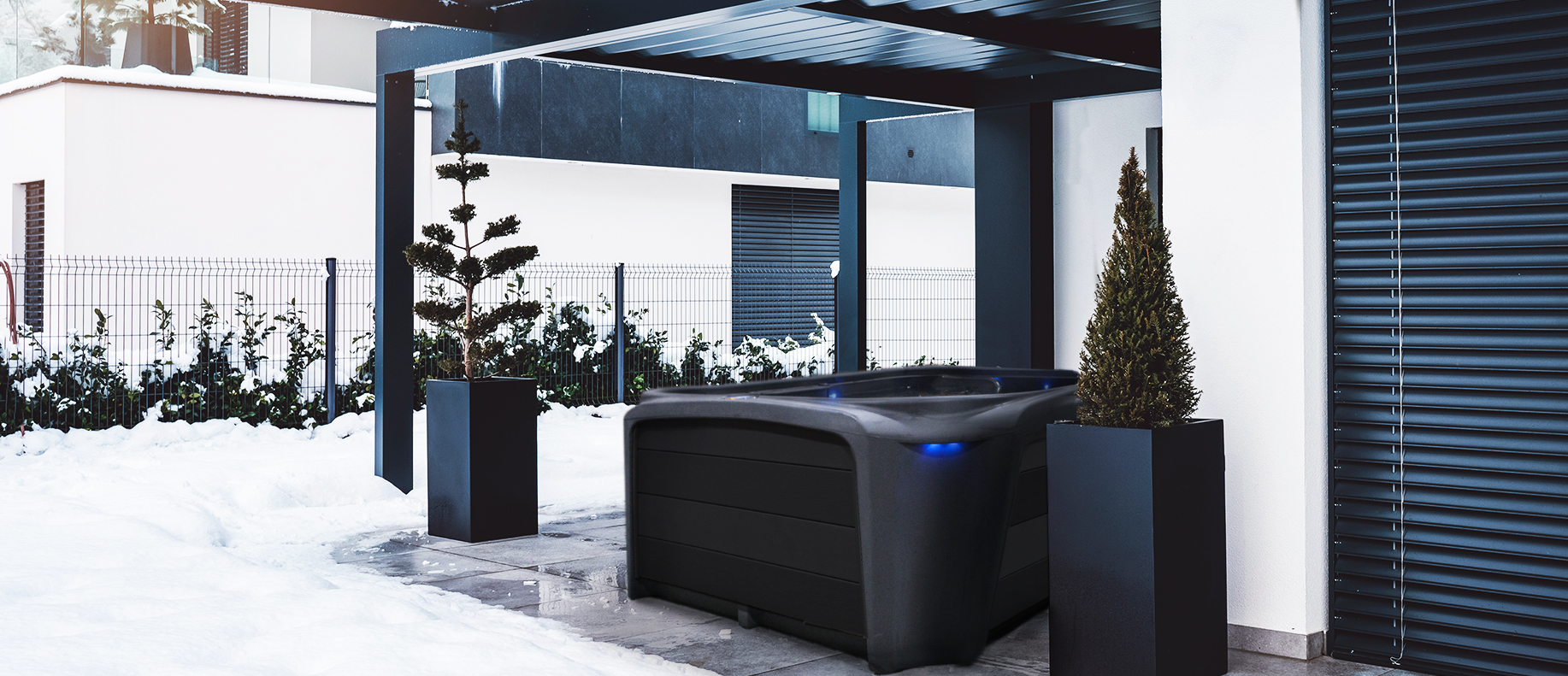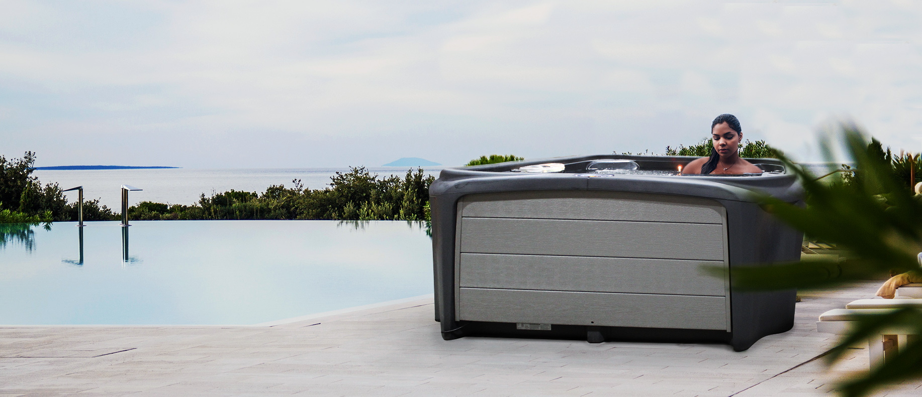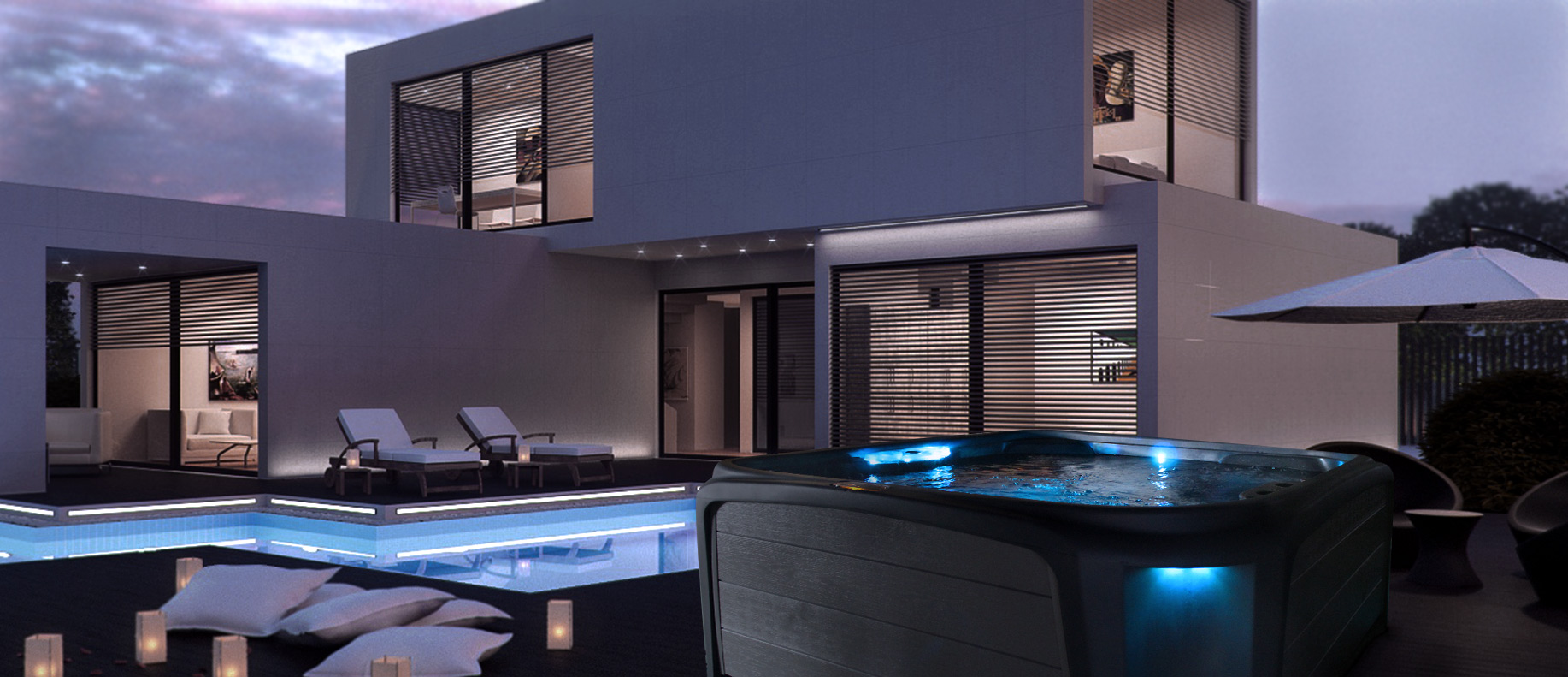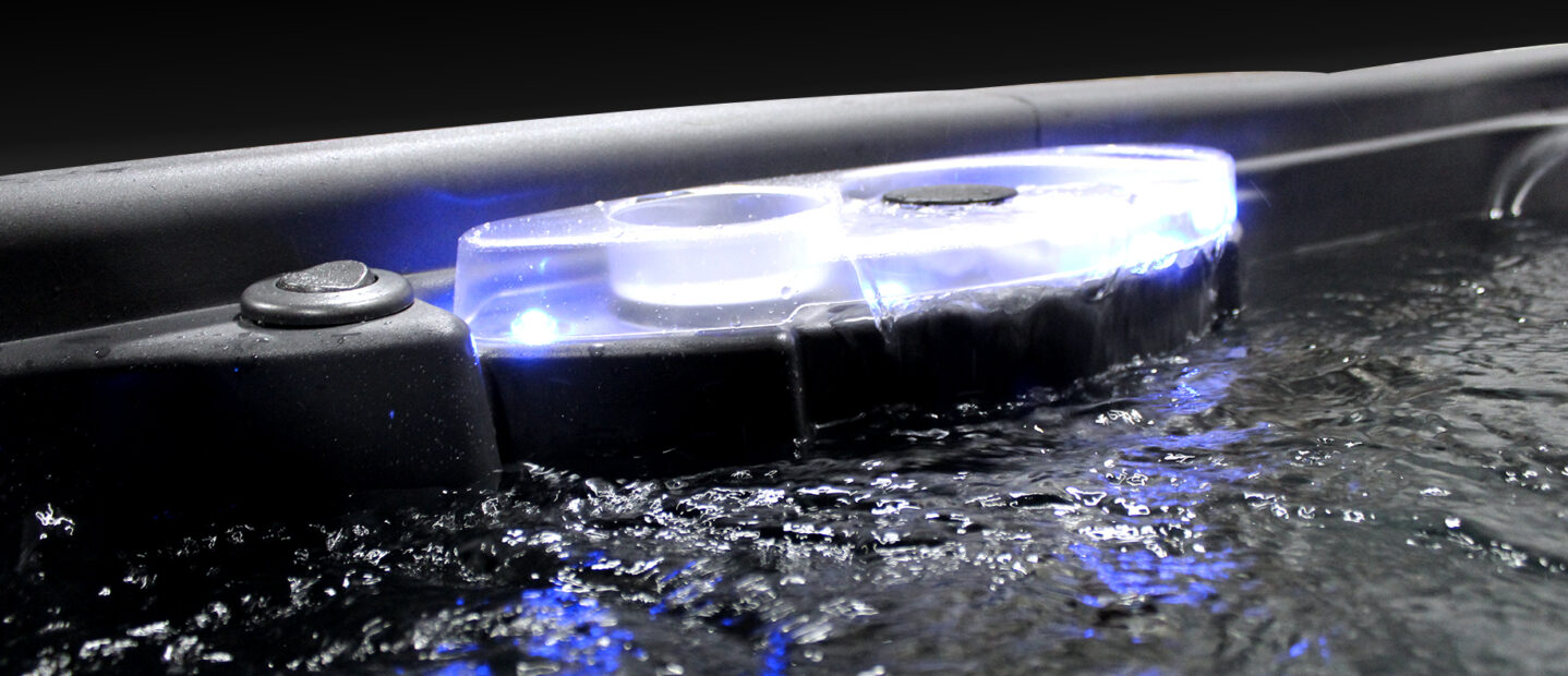 The Stream was designed with a contemporary look that you will be proud to display in your backyard. It has the ambiance of an LED backlit, cascading waterfall which is enhanced by external LED sconce lighting in each corner of the spa.